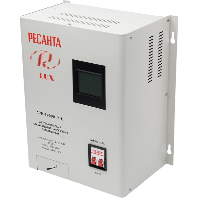 - Однофазный цифровой настенный стабилизатор напряжения серии LUX РЕСАНТА АСН-12000Н/1-Ц