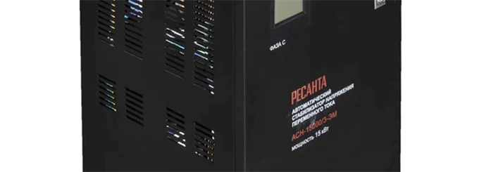 Стабилизатор обеспечивает защиту чувствительного оборудования от повреждений, вызванных перепадами, провалами или скачками напряжения. Модель с номинальной мощностью 15 кВт работает в диапазоне входного напряжения 240–450 В. Благодаря электромеханическому принципу действия и независимой стабилизации фаз трехфазный стабилизатор напряжения РЕСАНТА обеспечивает безопасность подключенного оборудования даже в условиях крайне нестабильной сети. КПД составляет 97%.