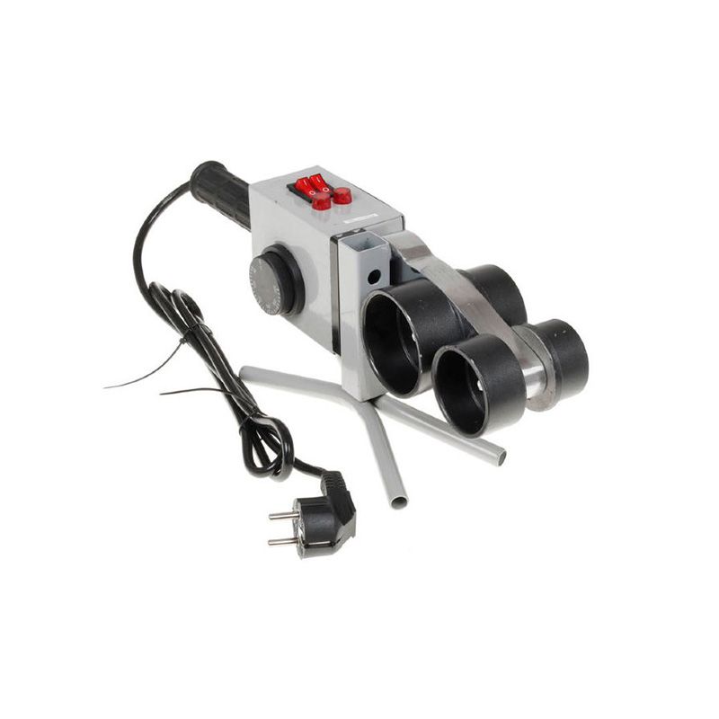 Сварочный аппарат характеризуется компактными размерами и небольшой массой, благодаря чему его достаточно комфортно держать в руках. Если в работе возникают перерывы, паяльник для труб можно установить на специально предназначенную для этого подставку. В удобном металлическом кейсе можно хранить и транспортировать сам аппарат, набор насадок с гильзами и дорнами, ножницами для резки труб, подставкой и другими инструментами.