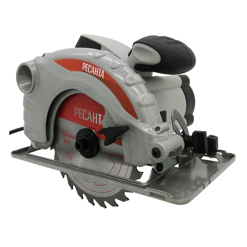 Циркулярная пила Ресанта оборудована защитным кожухом, который закрывает пильный диск. Выключатель оснащен блокировкой запуска привода, чтобы избежать непроизвольного старта.При замене режущего диска можно принудительно заблокировать шпиндель для упрощения и ускорения смены оснастки.