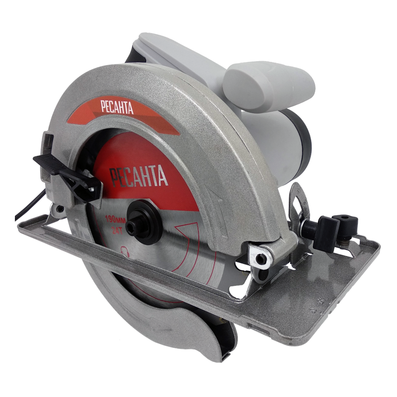 Циркулярная пила Ресанта оборудована защитным кожухом, который закрывает пильный диск. Выключатель оснащен блокировкой запуска привода, чтобы избежать непроизвольного старта.При замене режущего диска можно принудительно заблокировать шпиндель для упрощения и ускорения смены оснастки.