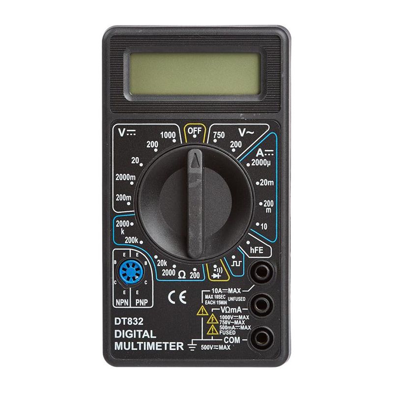 Мультиметр РЕСАНТА DT832 предназначен для измерения напряжения, тока, сопротивления, емкости, проверки диодов, транзисторов, звуковой прозвонки.