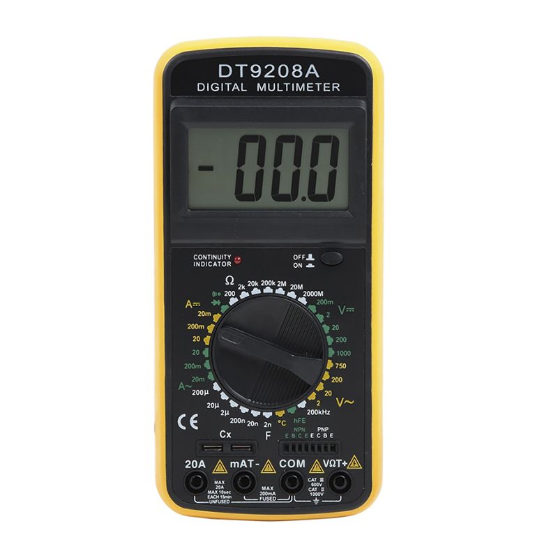 Мультиметр РЕСАНТА DT9208A — универсальный инструмент, включающий функции вольтметра, омметра и амперметра. Автоматическое определение полярности упрощает процесс измерений, а защита от перегрузок предотвращает аварийные ситуации.