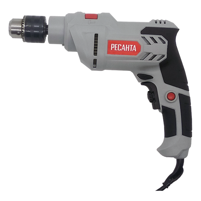Частота вращения шпинделя настраивается с помощью колесика на пусковой клавише. Максимальная скорость составляет 3000 об/мин. При продолжительных работах можно зафиксировать кнопку включения с помощью блокиратора на рукоятке, чтобы не удерживать ее постоянно. Ударный механизм включается клавишей на верхней части корпуса.Ударная дрель Ресанта работает в режимах сверления и ударного долбления. В первом случае инструмент подойдет для обработки дерева и металла, во втором – для бетона и кирпича. Максимальный диаметр отверстий составляет 13 мм в металле и 25 мм в древесине.