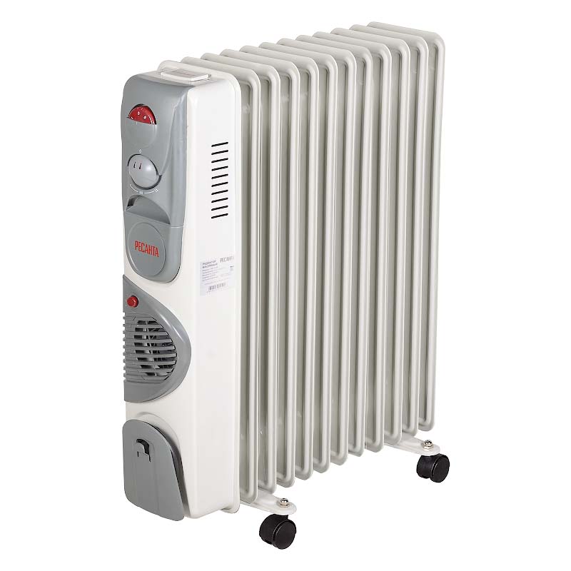 Встроенный вентилятор нужен для быстрого отопления небольшого пространства вокруг себя. Это актуально, если вы не хотите ждать, пока масло в радиаторе нагреется до нужной температуры.Простая эксплуатации РЕСАНТА ОМ-12НВ