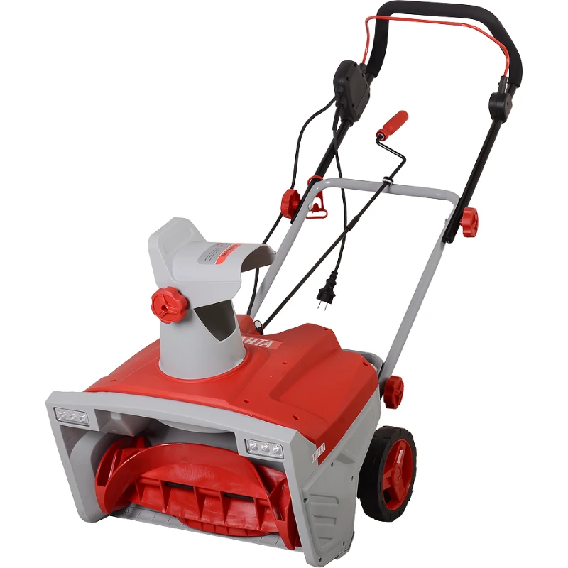 Электрический снегоуборщик запускается кнопкой на рукоятке — двигатель набирает обороты за секунды. Шнек захватывает снег шириной в полметра, измельчает его и направляет в выбрасывающий желоб, который регулируется вручную для изменения направления выброса. При работе на укатанном снегу достаточно одного прохода благодаря высоким оборотам и особой форме лопастей шнека. Фара включается автоматически и освещает зону перед ковшом в темноте. После окончания уборки шнек легко очищается от налипшего снега. Техника подходит для ежедневного использования после небольших снегопадов.
