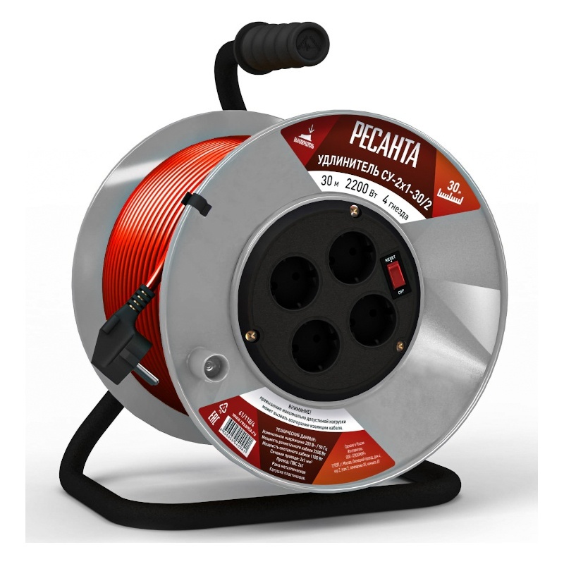 РЕСАНТА СУ-2х1-30/2 удлинитель силовой на пластиковой катушке в Туле
