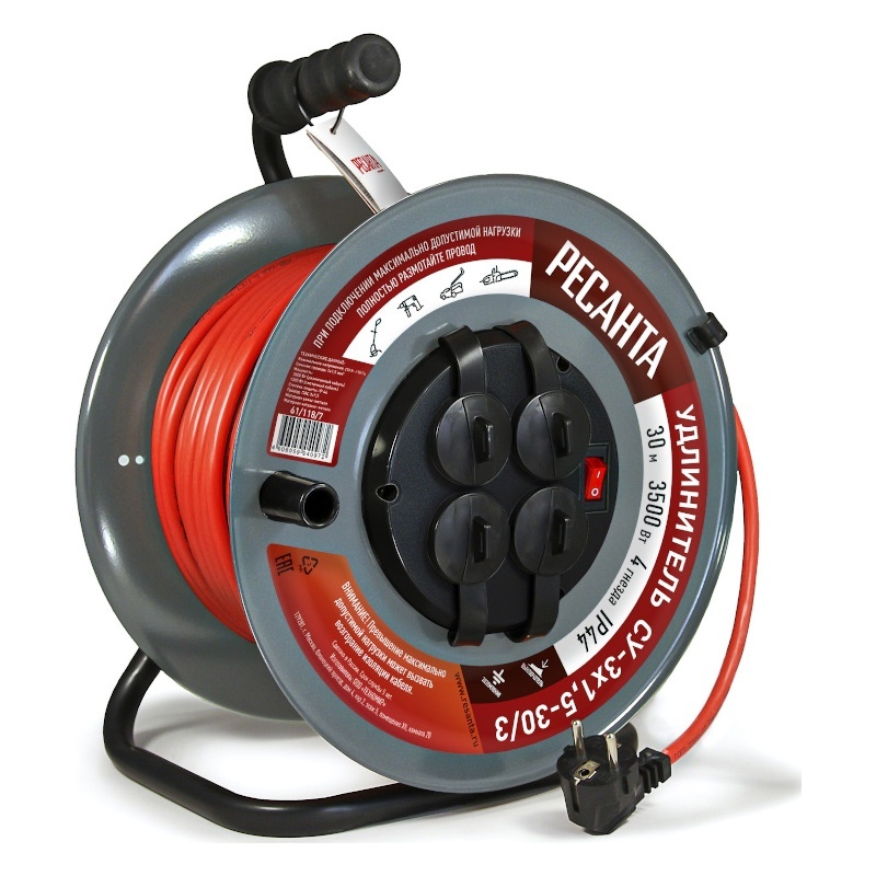 - Удлинитель силовой на металлической катушке Ресанта СУ-3х1,5-30/3