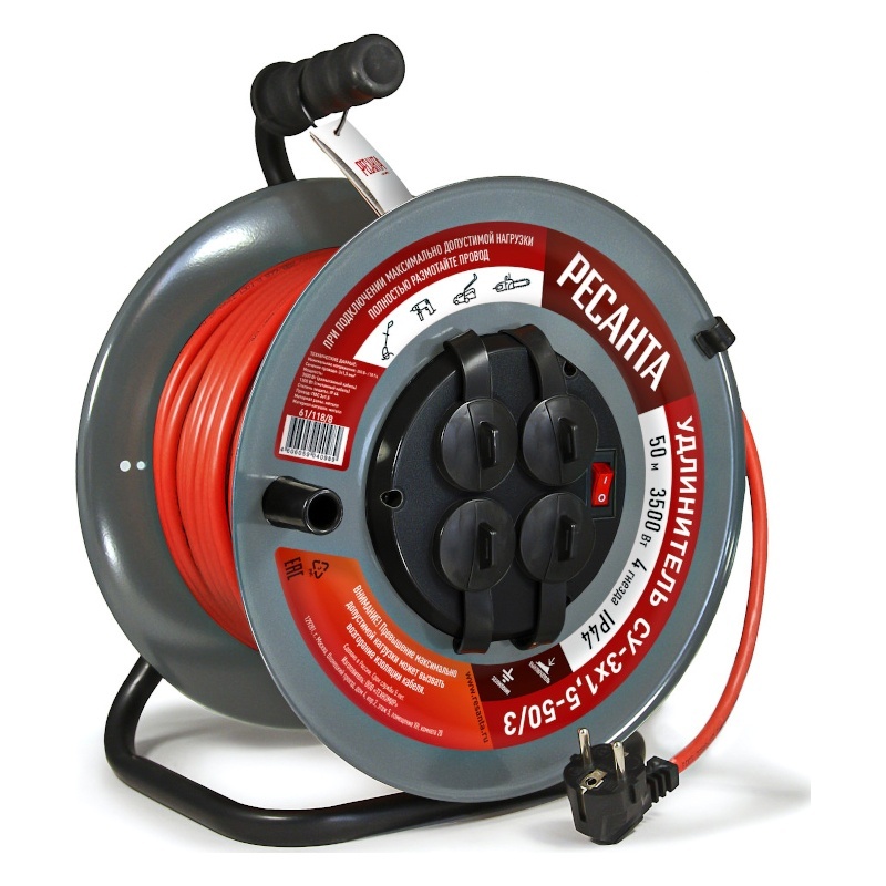 - Удлинитель силовой на металлической катушке Ресанта СУ-3х1,5-50/3