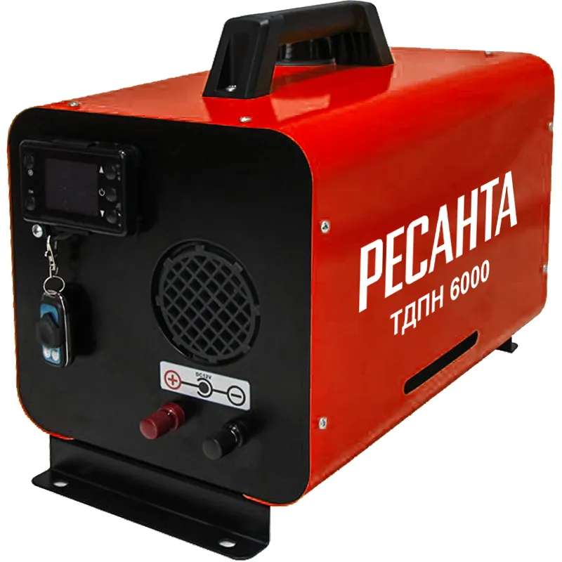 Дизельная тепловая пушка Ресанта ТДПН-6000, работающая от источника питания напряжением 12 В, может быть использована для обогрева гаражей, складов, мастерских, туристических палаток, кабин грузовиков, домов или теплиц. Благодаря непрямому нагреву вредные отходы горения выводятся наружу. Для удобства настройки и эксплуатации генератор с тепловой мощностью 6 кВт оснащен пультом дистанционного управления, кнопочной панелью и цветным цифровым дисплеем. Калорифер работает на керосине или дизеле.