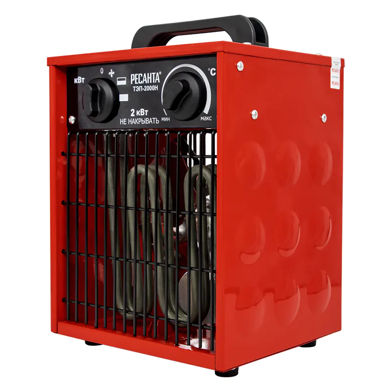 Электрическая тепловая пушка РЕСАНТА ТЭП-2000Н поможет решить вопрос отопления как жилых так и подсобных помещений в холодное время года. Вне сезона агрегат используется для сушки окрашенных поверхностей. Обогреватель питается от бытовой электрической сети, весит всего 2,9 кг, а также защищен от износа термостатом, который отключает и включает нагревательный элемент при необходимости.