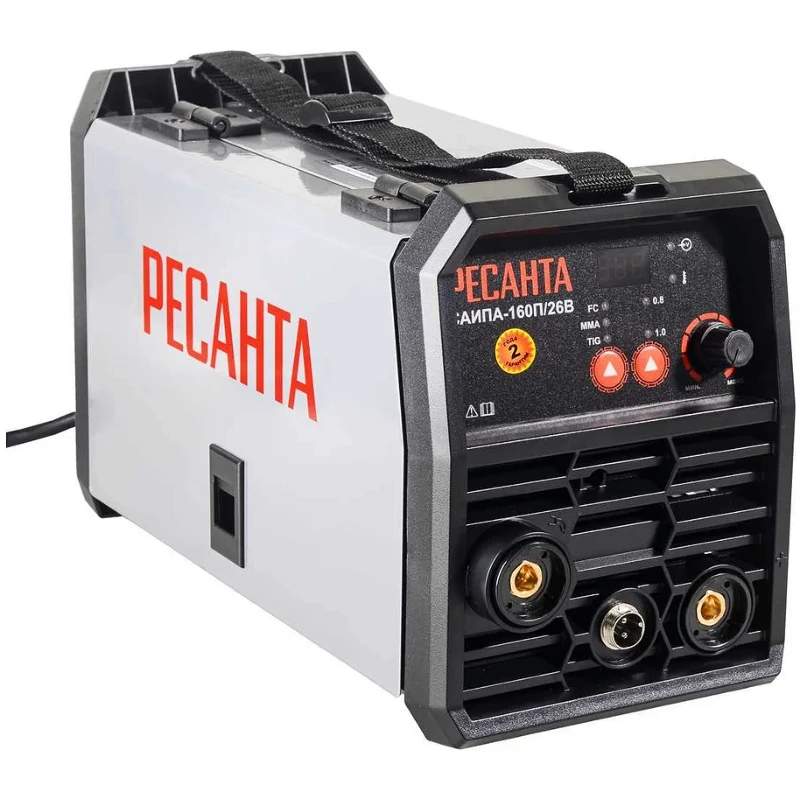 За счет инверторной технологии аппарат стабильно работает в широком диапазоне входного напряжения 140–270 В, несмотря на перепады в питающей сети. Сварочный аппарат Ресанта САИПА-160П/26В снабжен системой защиты от перегрева, при срабатывании которой на передней панели загорается индикаторная лампа. Прочный корпус устойчив к внешним неблагоприятным условиям.