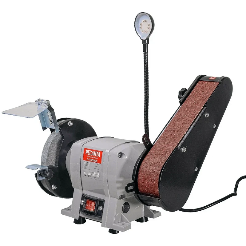 Натяжение шлифовальной ленты регулируется с помощью простых механизмов, без применения дополнительных инструментов. Лампа подсветки создает комфортные условия для работы с точильным станком Ресанта. Благодаря гибкому кронштейну свет можно направить в нужную сторону.